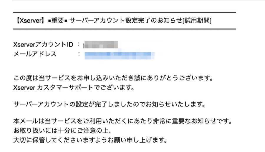【Xserver】■重要■ サーバーアカウント設定完了のお知らせ[試用期間]