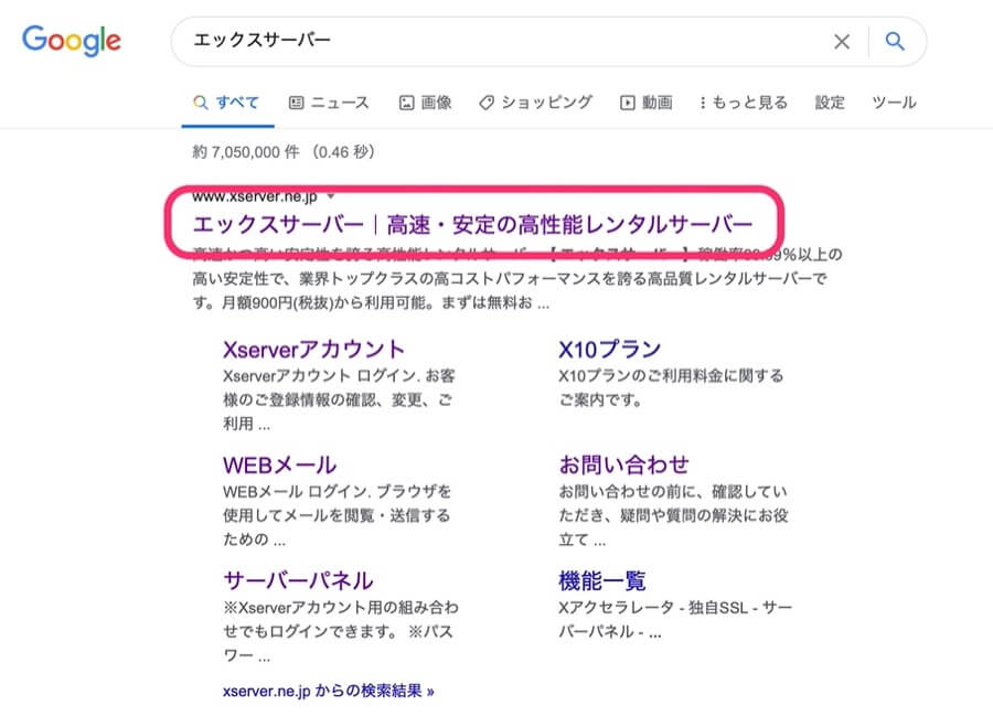 2)エックスサーバーの公式サイトが表示されている場合には3番へお進みください。