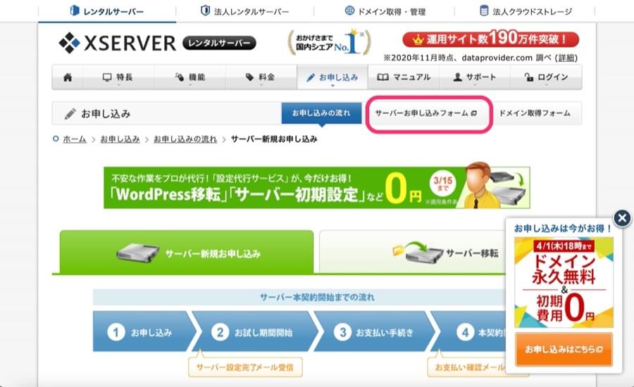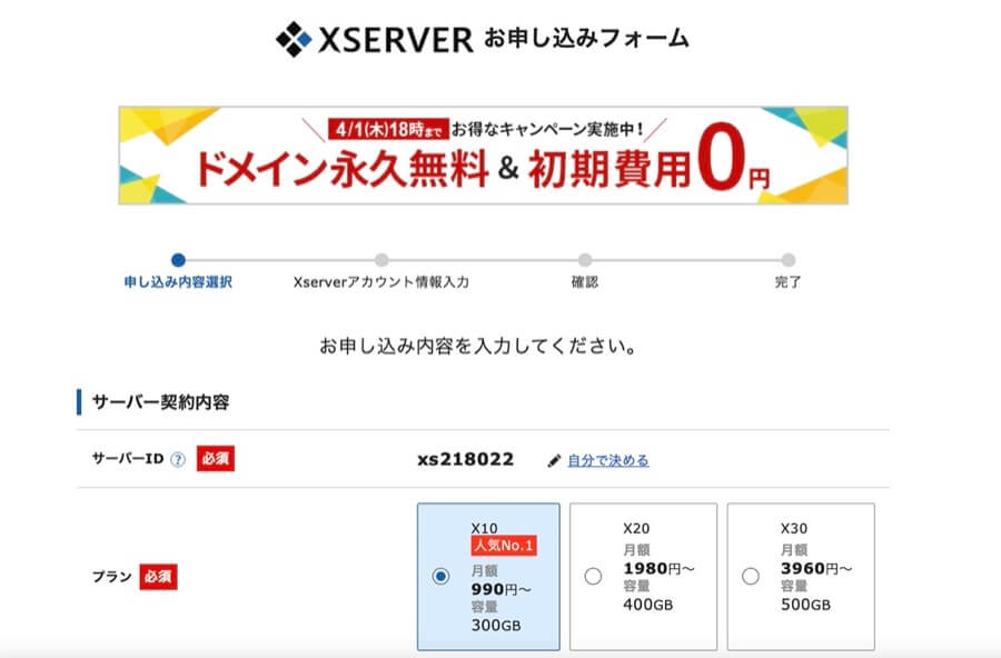エックスサーバーに限らず、申し込みに関しての細い部分は時期によって変わることがあるので、実際に僕も申し込んで解説してみたいと思います。